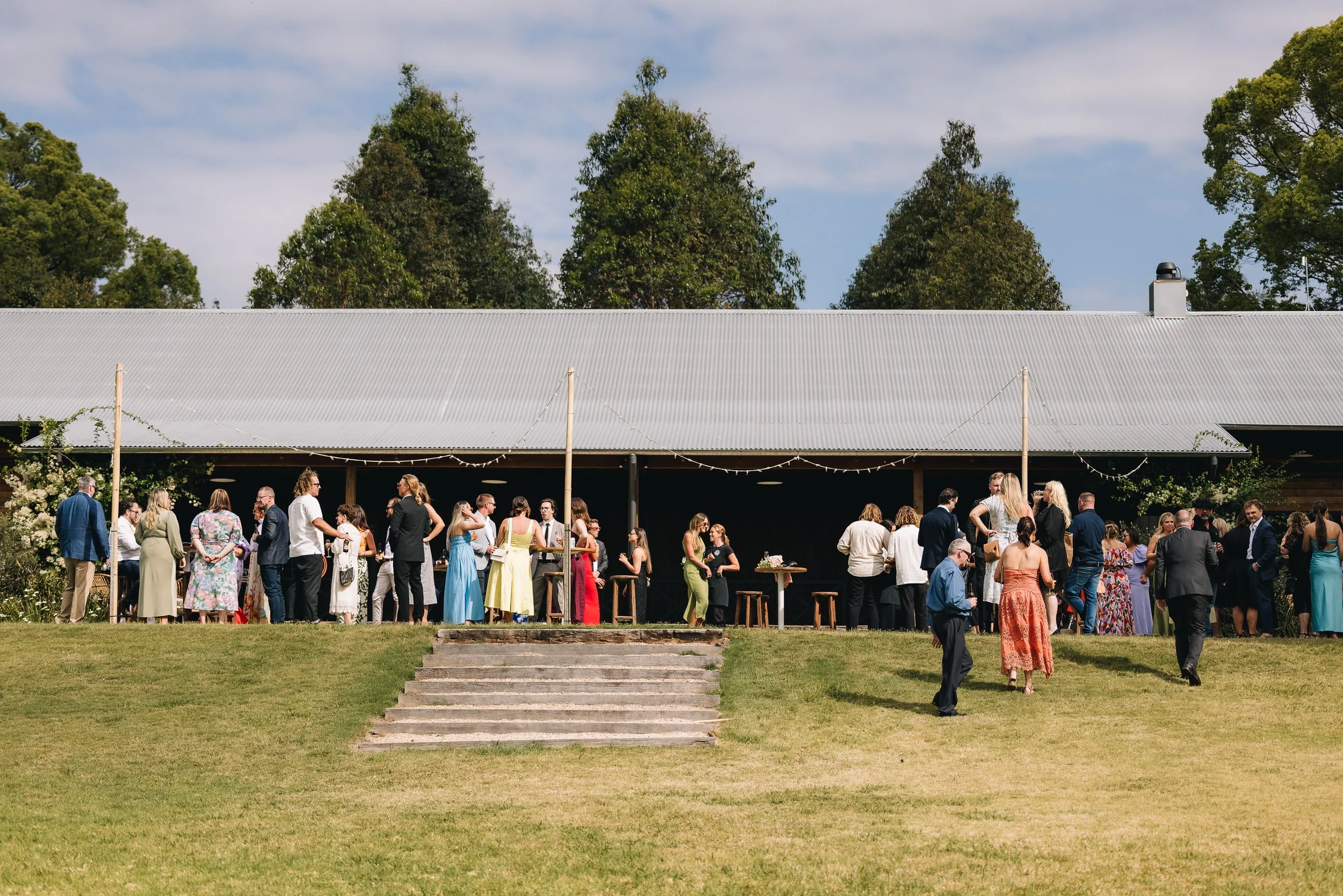 Our large, open-plan barn opens onto a spacious grass terrace and has stunning hinterland views, a full commercial kitchen and restaurant with staff, furniture and serving-ware for 120 people (we can hire in additional items for groups larger than this).